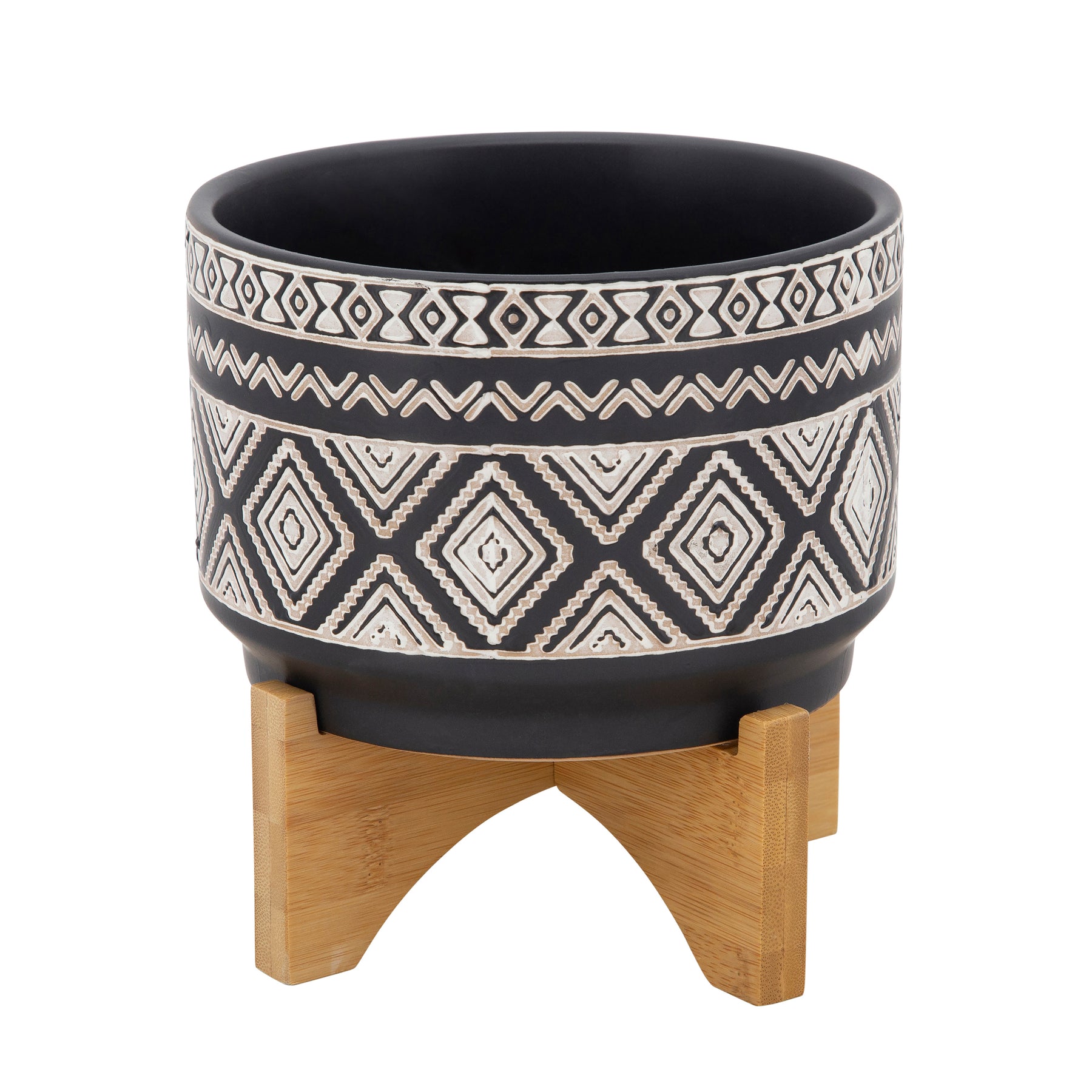 Regular price $49.00 Sale price $15.46 Save $33.547' Diamond Planter On Stand, Black. Place This Black Matte, Diamond Design, Ceramic Planter In Any Space To Enhance The Room With A Peaceful Environment. This Ceramic Planter Has An Elegant Stylish Matte Gray As The Base And Cr�me Diamond Design. It Sits Atop Of A Wooden Stand.Sagebrook Home has been formed from a love of design, a commitment to service and a dedication to quality. They create and import fashion forward items in the most popular design styles. Backed with years of experience in the textile field, They are now providing a complete Home decor story. the combination of wall decor, furniture, lighting and Home accessories are all coordinated with textiles to provide a complete Home look. Sagebrook Home is committed to providing the best Home dŽcor and accent pieces at value prices. FINAL PURCHASE, NOT ELIGIBLE FOR RETURN OR CANCELLATION.