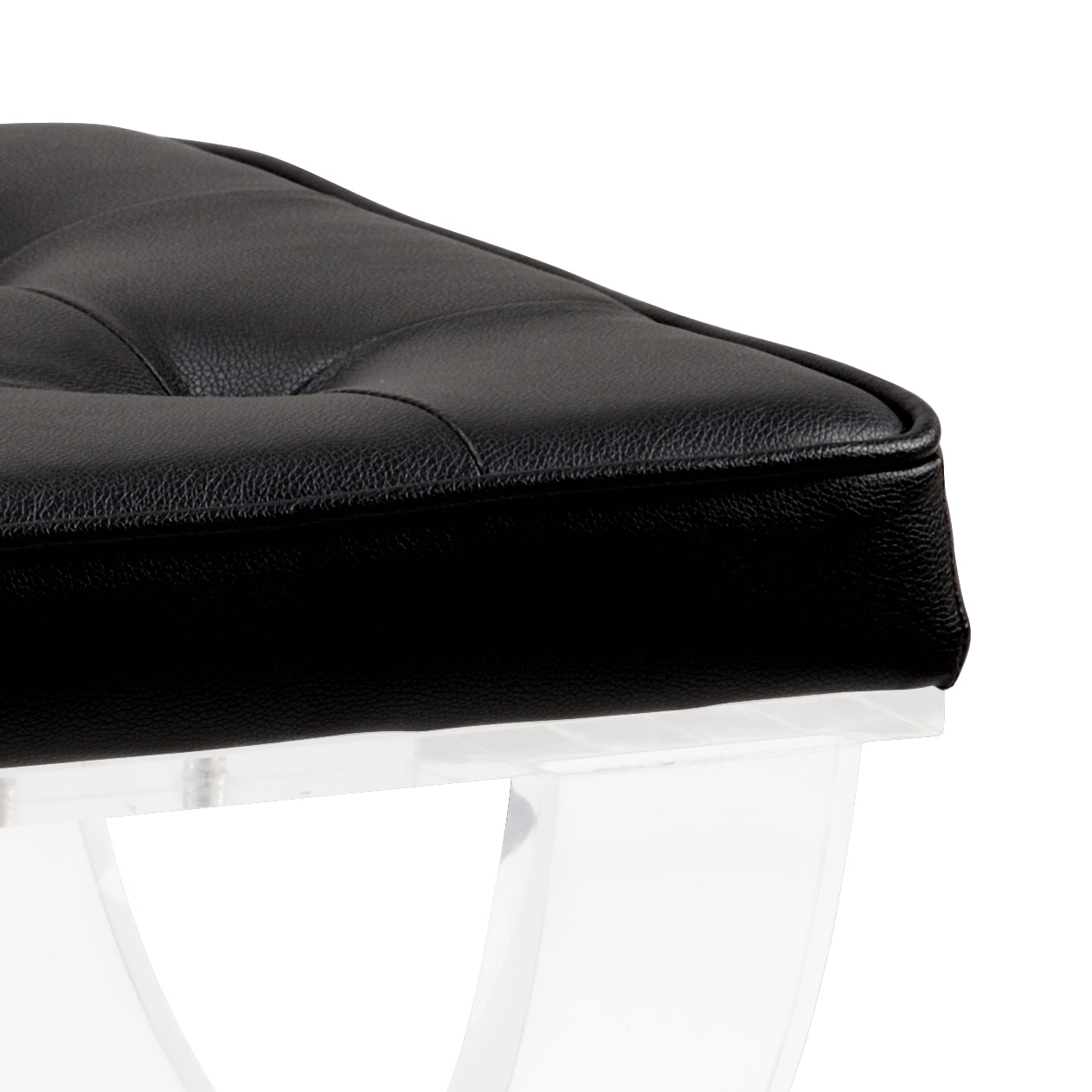 Clear Acrylic Bench With Black Leather Tufted Cushion.