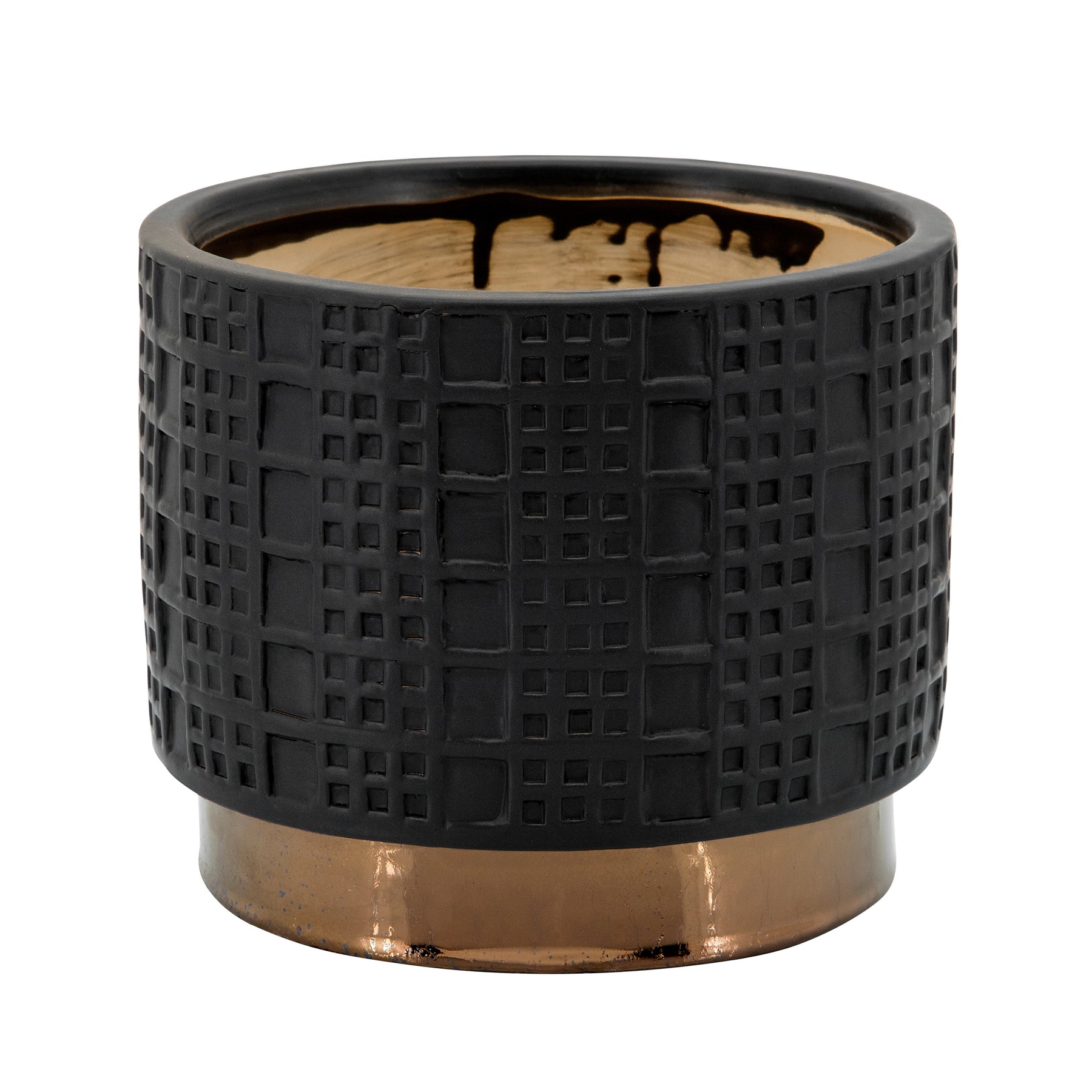 Regular price $60.00 Sale price $18.90 Save $41.10Set Of 2 Mesh Metallic Planters 6"/8", Black. Place These Black Matte, Mesh Design, Ceramic Planters In Any Space To Enhance The Room With A Peaceful Environment. These Ceramic Planters Have An Elegant Stylish Black Matte Mesh Design On The Planter, The Base Is A Beautiful Gold.Sagebrook Home has been formed from a love of design, a commitment to service and a dedication to quality. They create and import fashion forward items in the most popular design styles. Backed with years of experience in the textile field, They are now providing a complete Home decor story. the combination of wall decor, furniture, lighting and Home accessories are all coordinated with textiles to provide a complete Home look. Sagebrook Home is committed to providing the best Home dŽcor and accent pieces at value prices. FINAL PURCHASE, NOT ELIGIBLE FOR RETURN OR CANCELLATION.