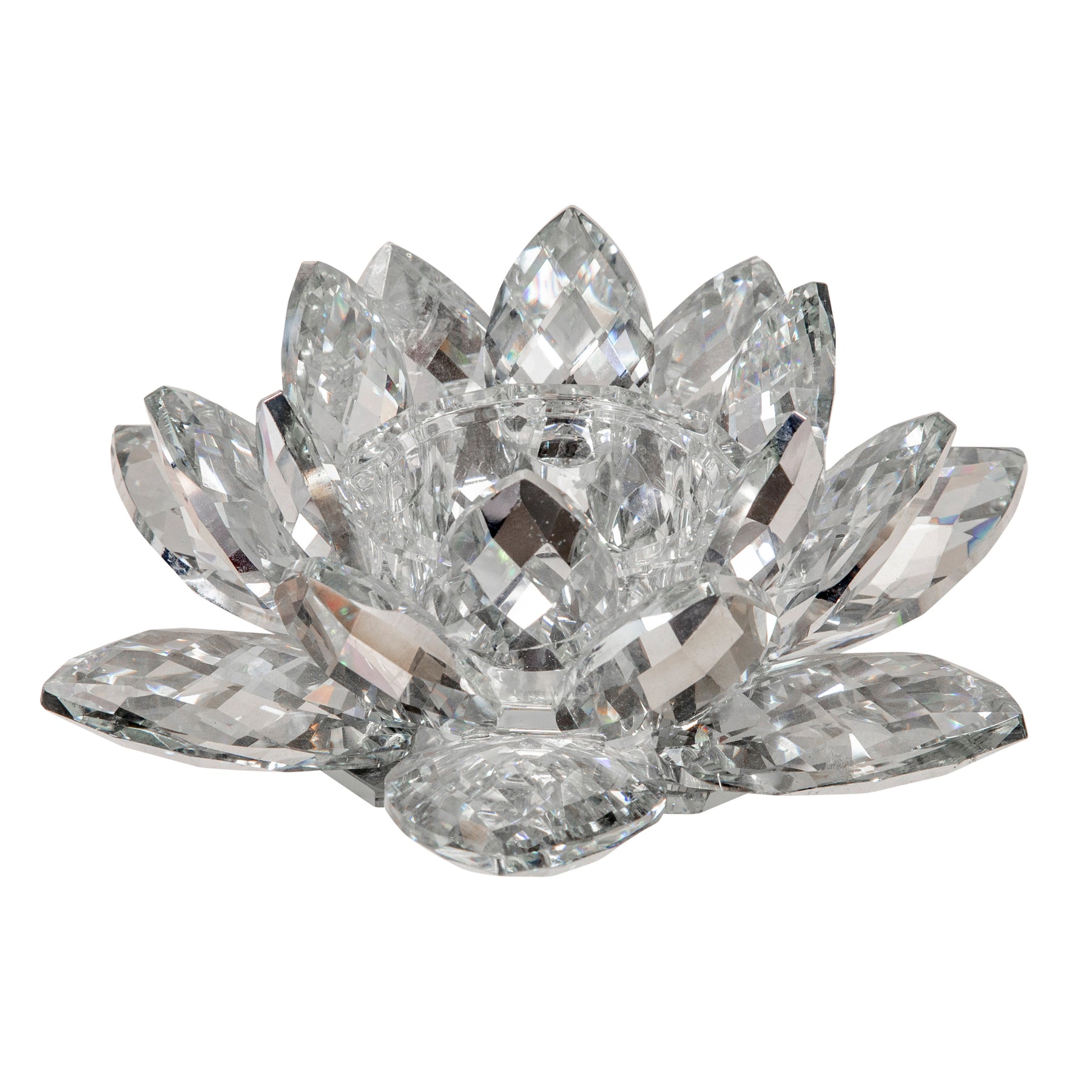 Regular price $92.50A home with a candle warm glow is the center of relaxation. Add glam to your relaxation with our 8.25" silver crystal candle holder. It has a shape of a lotus votive to resemble nature flowers, and adds 3" of height to your preferred candle sticks. Beautifully crafted crystal to give a reflective shine off of the candle's flare. FINAL PURCHASE, NOT ELIGIBLE FOR RETURN OR CANCELLATION.