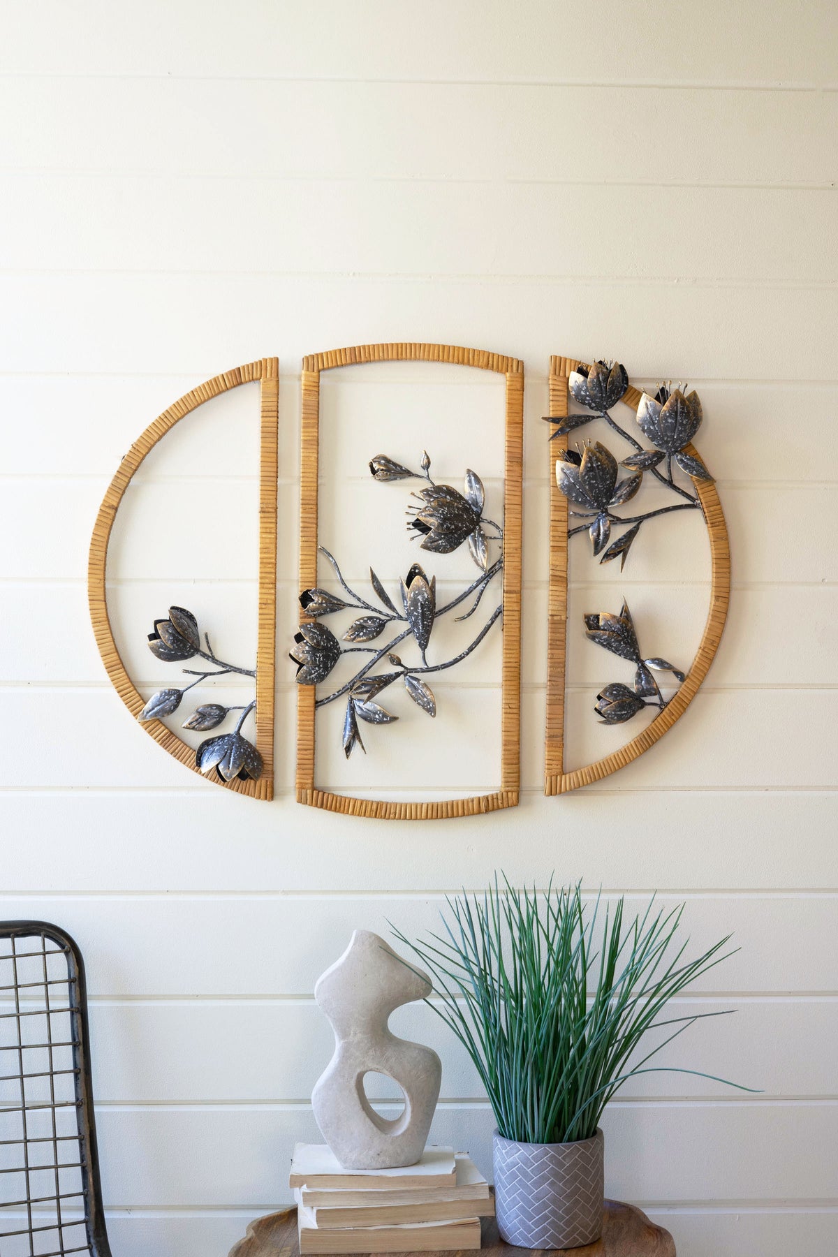 Three Piece Rattan Framed Floral Wall Art