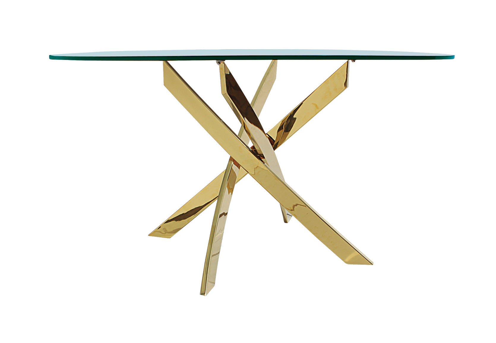 54.4" Round Dining Table W/ Glass Top And Gold Legs