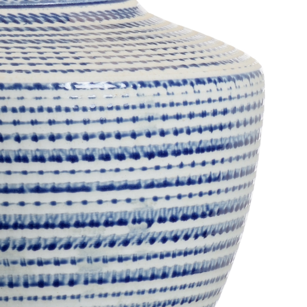 Blue And White Textured Finish On Ceramic With A Brass Mounting.