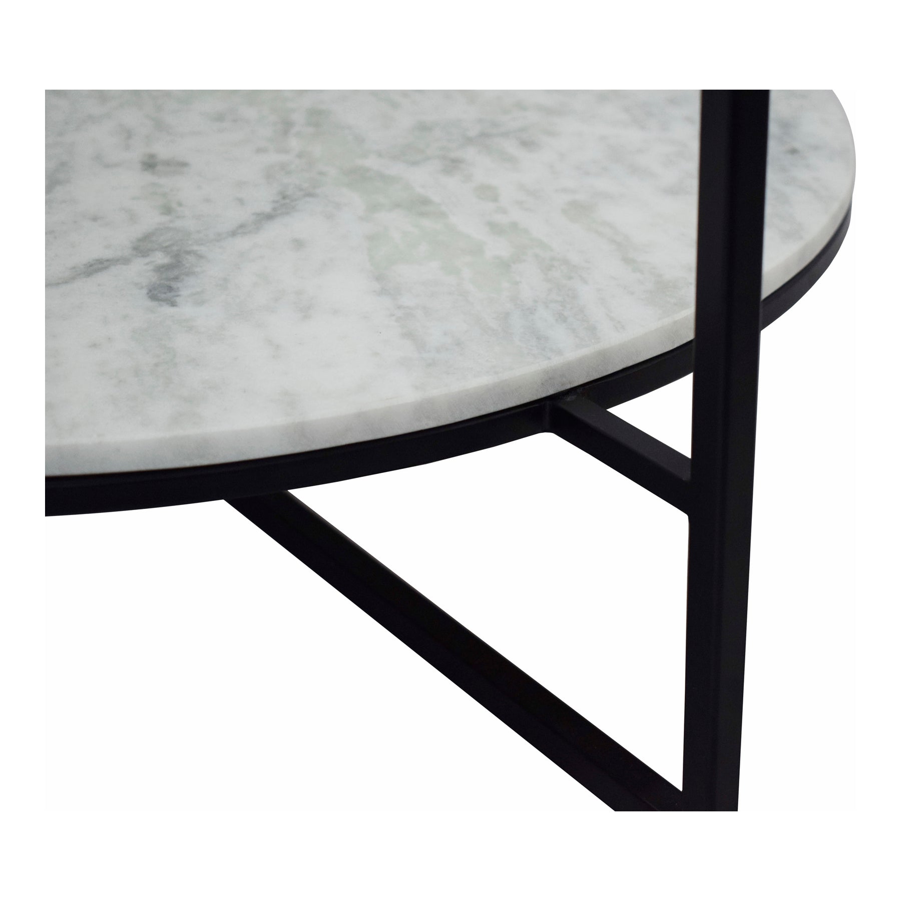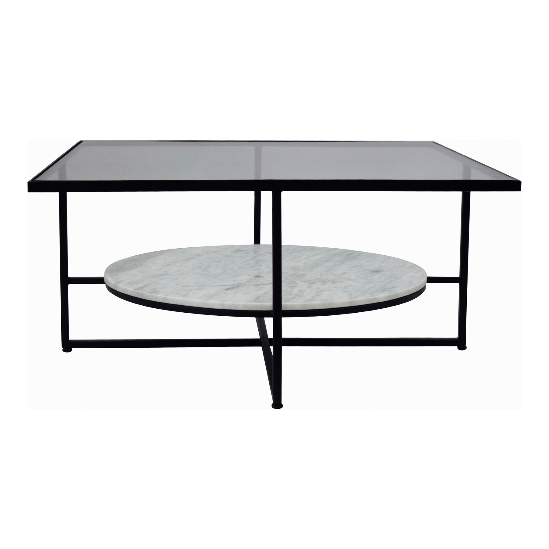 Modern material play. Craving a new centerpiece for your living room? Simple geometry makes quite an impact with the Lova coffee table. With a beautiful white marble shelf, Lova's tempered glass top provides a durable, optic surface that lends eye-catching support to its black iron frame. A masterclass in modernism - get ready for the compliments as this airy design accentuates the flow of your 'social and chill' space.